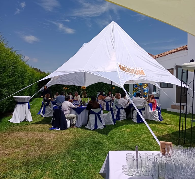 Estructuras resistentes para proteger tu evento del sol o la lluvia.